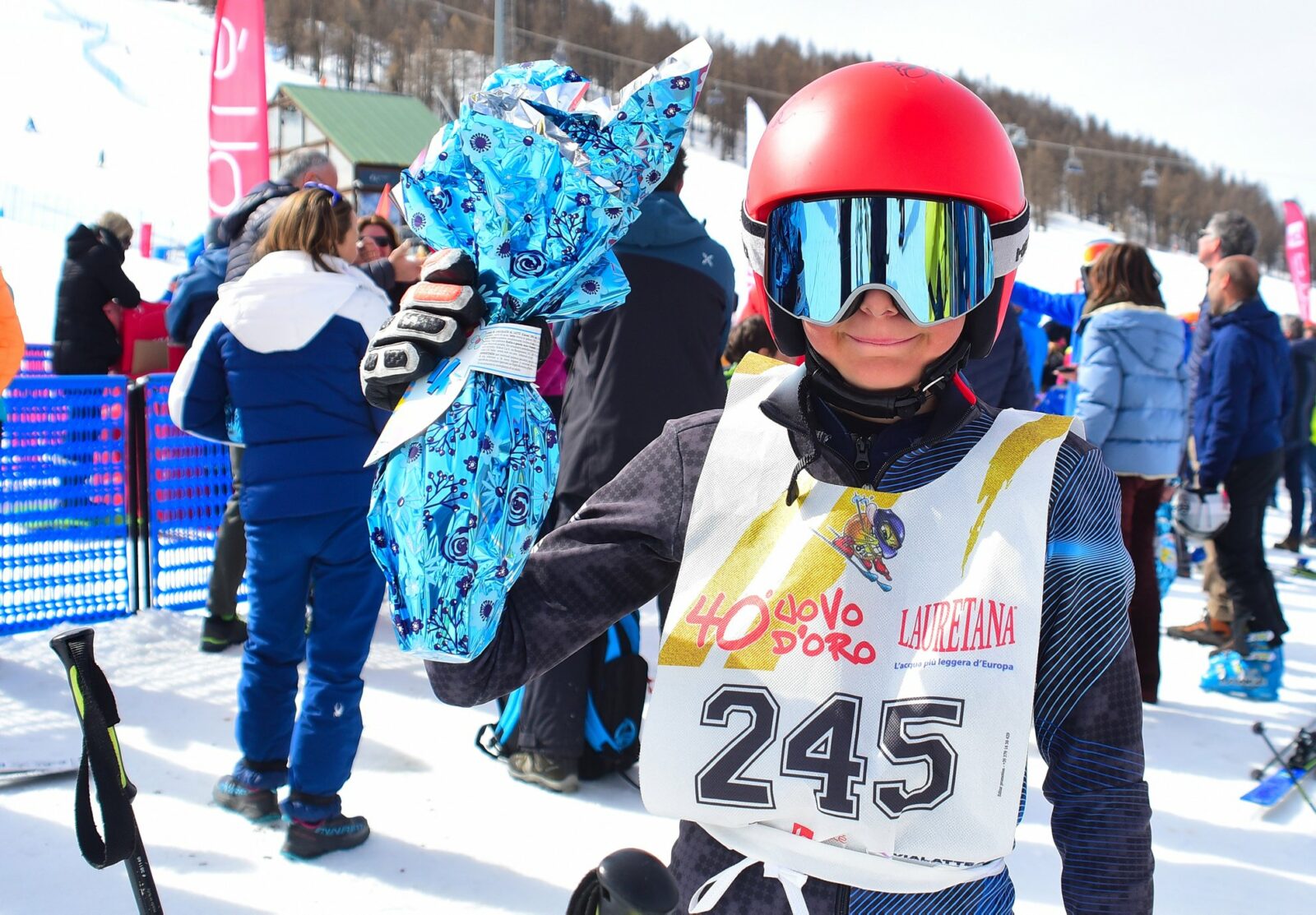 Tout le monde gagne ! En effet, tous les participants reçoivent le traditionnel œuf en chocolat et un kit de course bien garni. La manifestation atteint son apogée avec la remise officielle des prix, suivie du tirage au sort très attendu, auquel participeront tous les concurrents et leurs entraîneurs. La 43e édition de l’Uovo d’Oro se déroulera sur les pistes olympiques de Sestrières. À cette date, les catégories Baby, Super Baby, Cuccioli, Ragazzi et Allievi s’affronteront à coups de slalom géant.