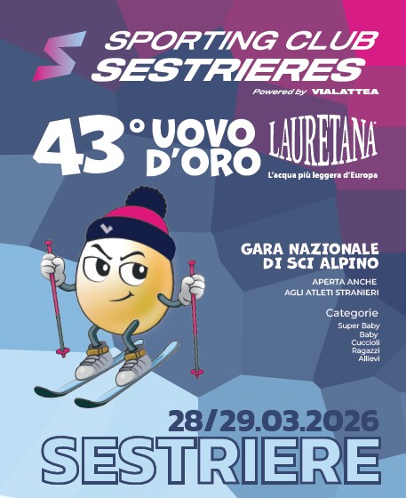 La 43ème édition de l’Uovo d’Oro Lauretana se déroulera sur les pentes olympiques de Sestriere le 28-29 MARS 2026. Il s’agit d’une course inscrite au calendrier national du Salom géant, également ouverte aux athlètes étrangers, qui se déroule sur les pentes olympiques de Sestriere depuis 1981. Cinq catégories s’affronteront: Super Baby, Baby, Cuccioli, Ragazzi et Allievi, hommes et femmes.