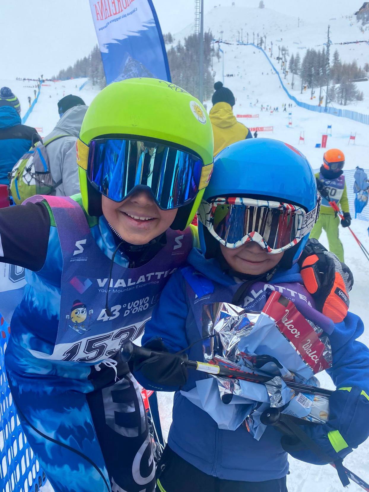 La manifestazione si è conclusa con l’allegra sfilata per le vie del paese aperta dal Corpo Musicale di Villar Perosa che ha accompagnato tutti i partecipanti alla ricca cerimonia di premiazione finale alla quale hanno preso parte due ospiti d’onore: Claudia Giordani e Piero Gros. Due grandi campioni dello sci italiano, particolarmente legati al territorio della Vialattea, che proprio quest’anno festeggiano il cinquantesimo anniversario delle loro medaglie olimpiche, una ricorrenza importante che Vialattea ha voluto celebrare con un riconoscimento speciale: una targa all’insegna dell’”Orgoglio Vialattea”, consegnata sul palco del 43° Uovo d’Oro Lauretana per omaggiare le loro straordinarie carriere. Giordani e Gros a loro volta hanno premiato i vincitori della giornata, regalando ai giovani talenti in gara un momento di grande emozione e ispirazione.
